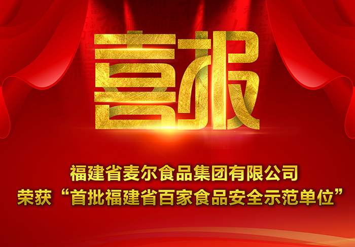 喜報(bào)——麥爾食品集團(tuán)有限公司榮獲:首批福建省“百家”食品安全示范單位